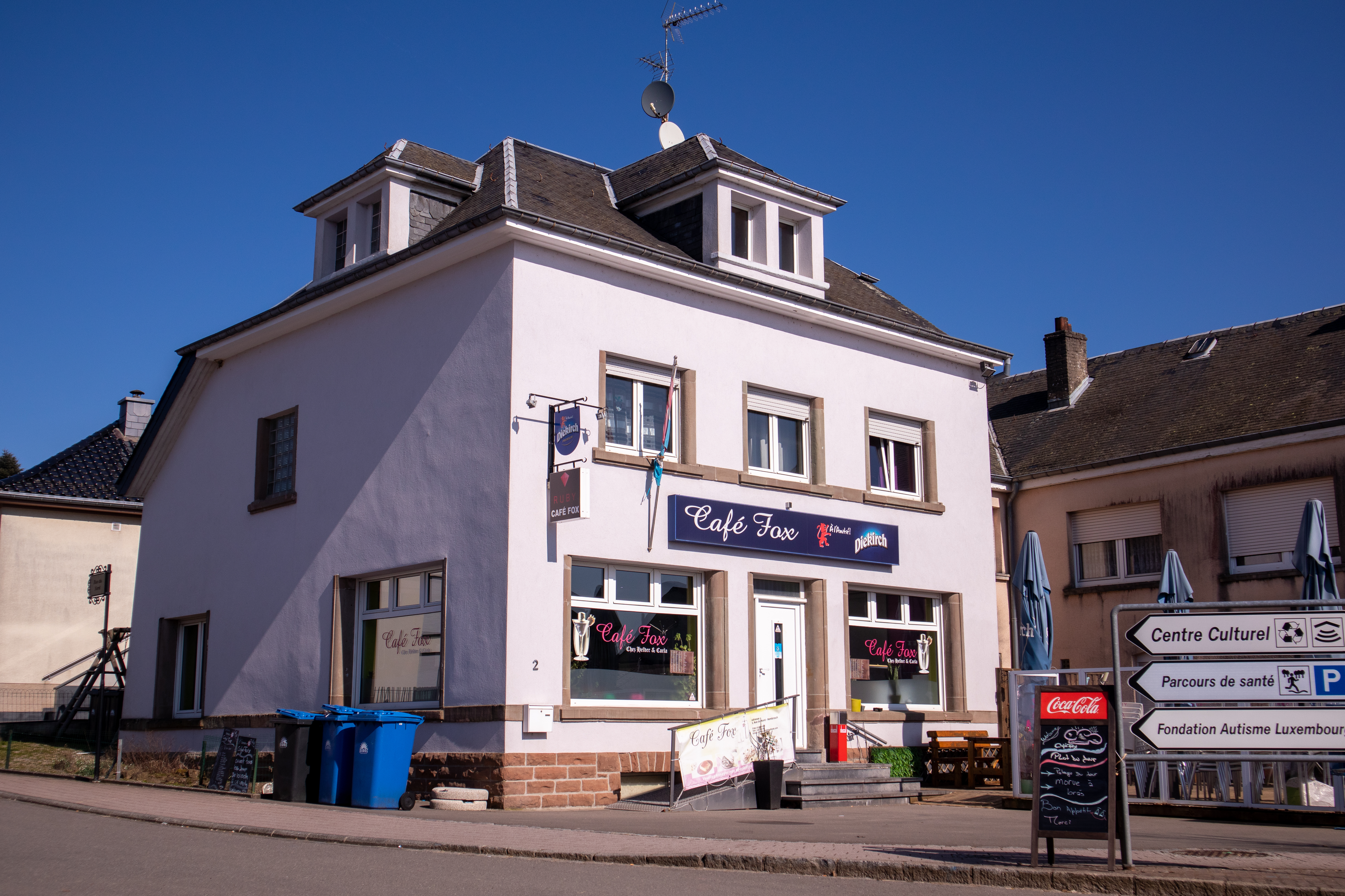 Chez Helder et Carla, das Café Fox in Rambrouch bietet eine vielfältige Auswahl an Snacks, Burgern und portugiesischen Spezialitäten sowie täglich wechselnde Tagesgerichte.