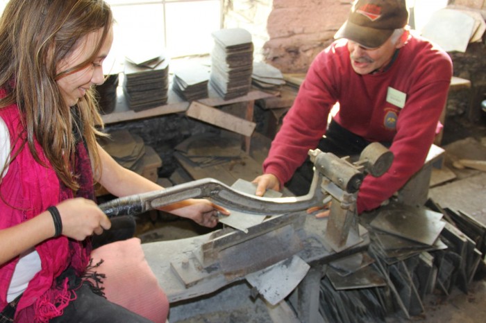 En famille, nous visitons le Musée de l’Ardoise à des moments propices. Nous nous aventurons dans le monde souterrain de l’ardoise. Nous poursuivons notre chemin dans la carrière, de l’extraction au produit fini. Nous découvrons le travail de l’ardoisier et fendons l’ardoise pour en faire des plaques. Pour terminer, chacun réalise son propre médaillon, plaquette ou pose-plats en ardoise polie et décorée.